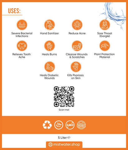 Our Strong Acidic Water is a natural antibacterial & antifungal solution that protects your health, heals your skin, and keeps your surroundings safe, without harmful chemicals.